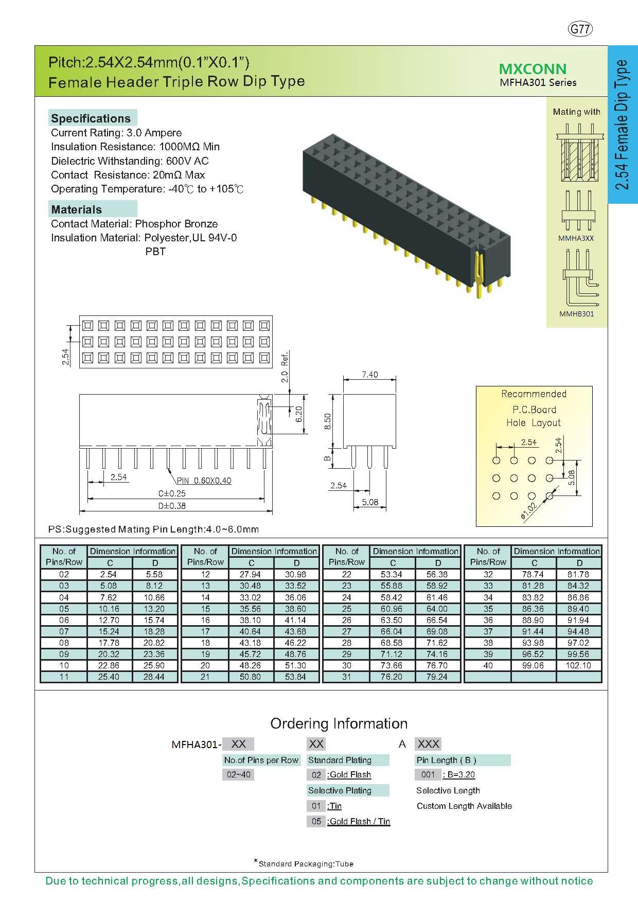 ·Pitch:2.54mm