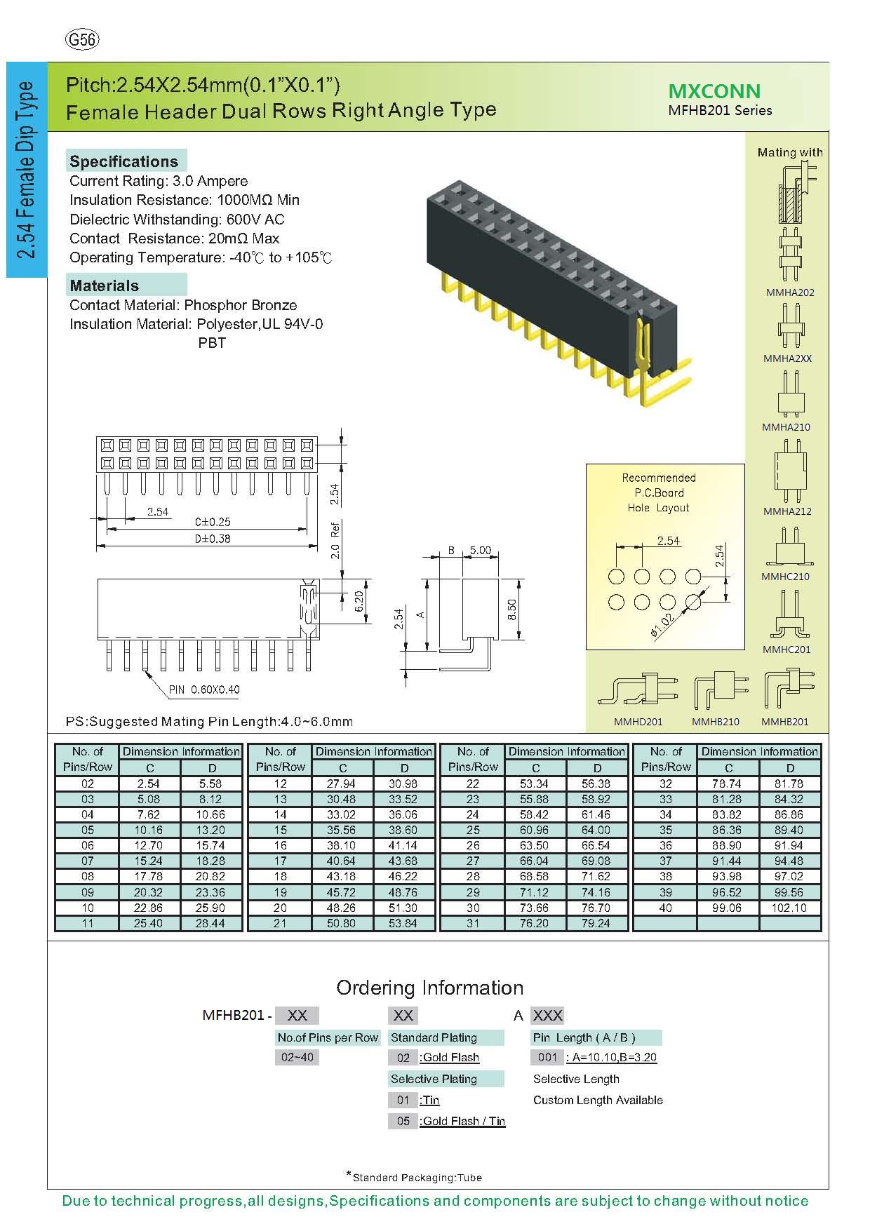 ·Pitch:2.54mm