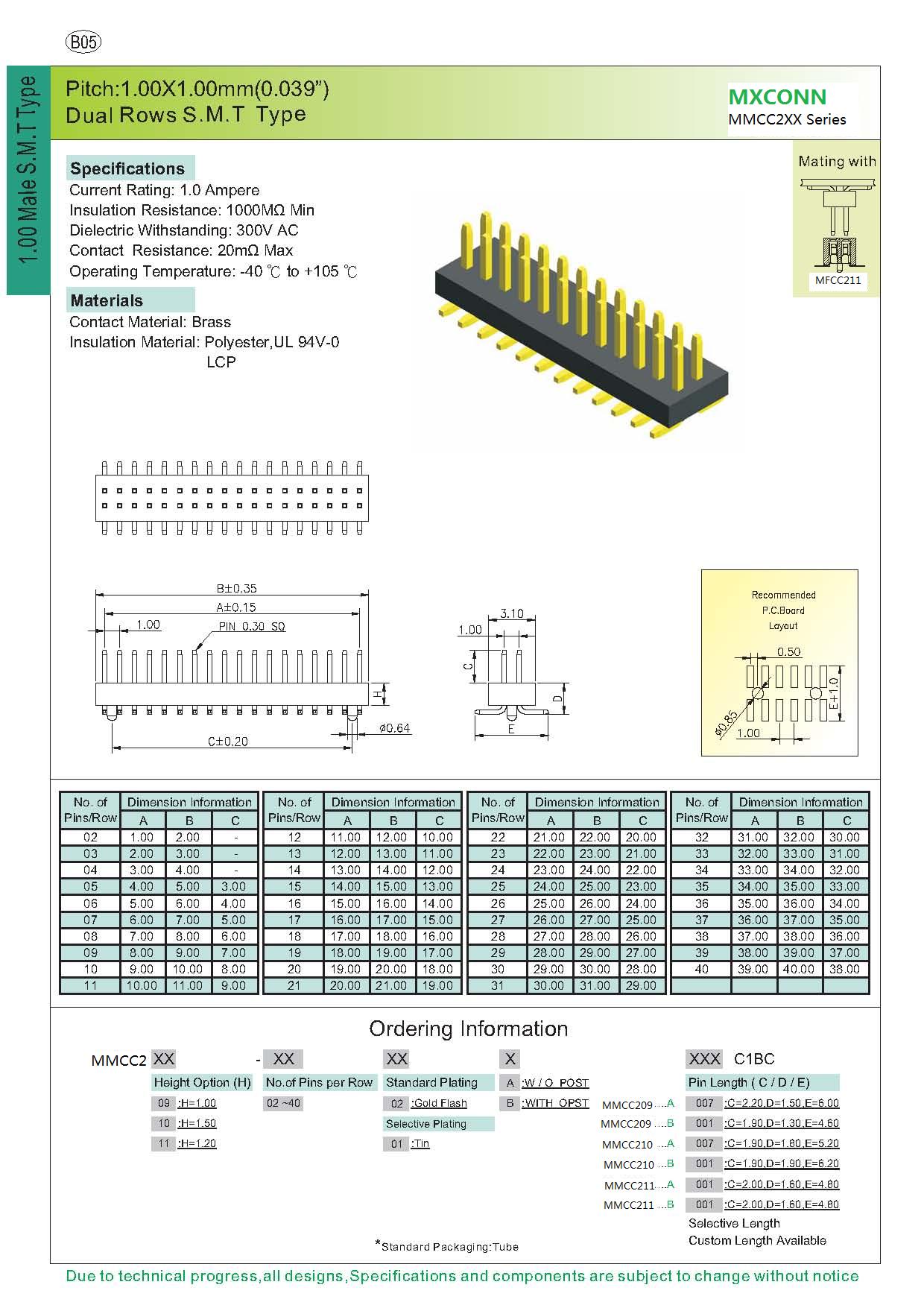 ·Pitch:1.0mm-C