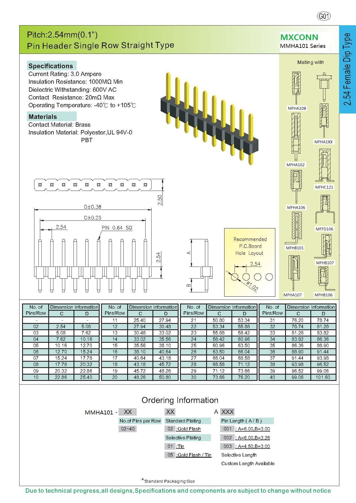 ·Pitch:2.54mm